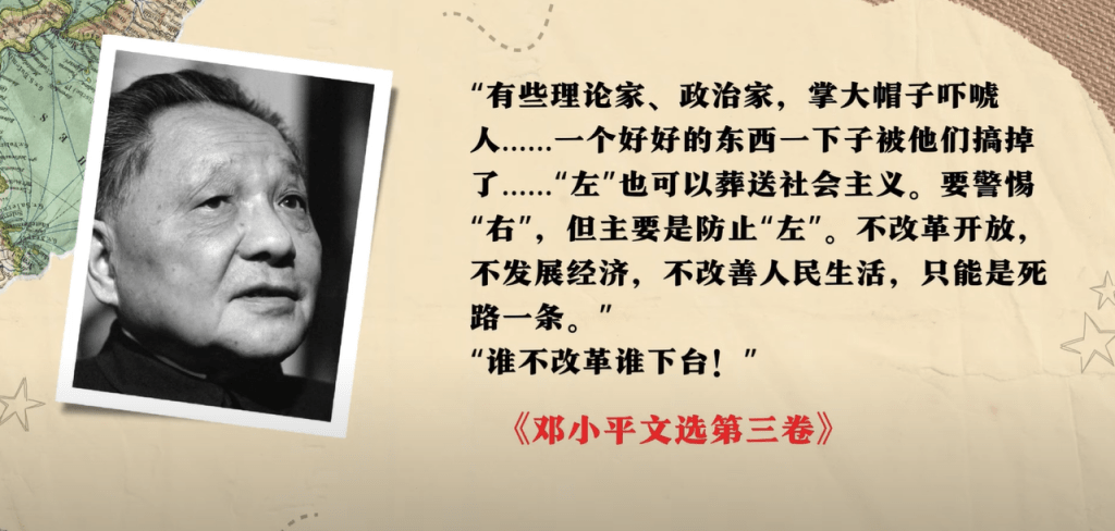 比如在1985年5月20号,邓小平在会见台湾的一个叫陈鼓应的教授时,就说过:“我们大陆坚持社会主义,不走资本主义的邪路。”这个”邪路”的说法其实最早就是起自邓小平。所以尽管陈云和邓小平一直明争暗斗,但是在保持红色江山不变色这一点上,他们是高度一致的。