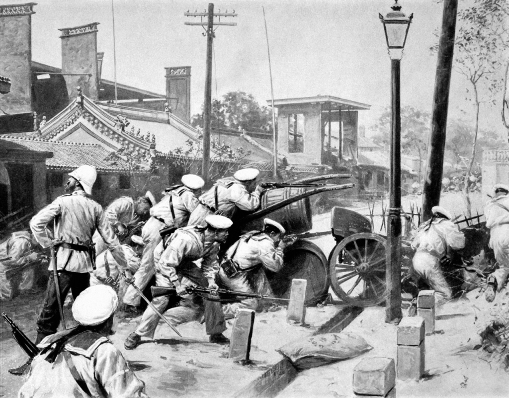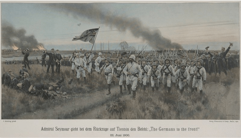 在排外的狂潮中,北京的洋人和教民纷纷向东交民巷使馆区和西什库教堂聚集自保。列强并不是傻子,早就看出了清廷对义和团的纵容,所以未雨绸缪,在5月底就开始向停泊在天津大沽附近的各国海军发出求援。于是一支由八国海军部队組成的联军432人(法国75人,俄国79人,英国79人,美国53人,意大利39人,日本24人,德国51人、奧匈32人),于6月1日抵达北京,守卫各国使馆。[9]