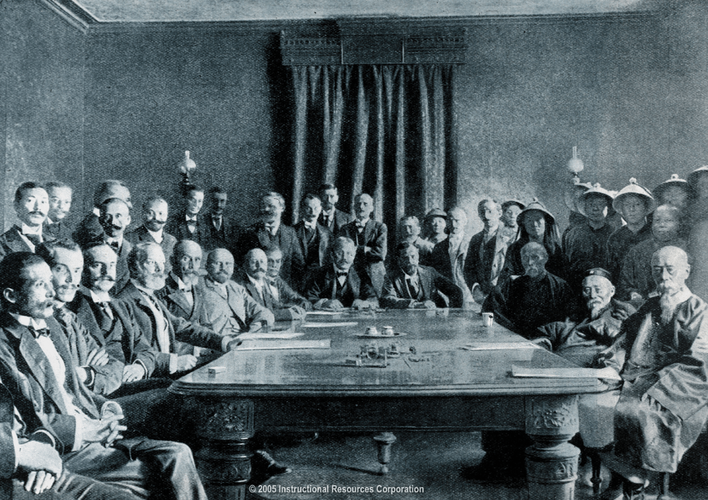 1901年1月15日,奕劻、李鸿章在《议和大纲》十二条上正式签字画押。并接受了列强要求严惩的各级排外官员,共达142人之多。其中要求处死的12人,包括前文所述的疯狂排外的载漪、毓贤、刚毅、李秉衡等人;到4月,派醇亲王载沣等人任专使,就杀害外交人员事件分别赴德、日谢罪;同时改“总理各国事务衙门”为“外务部”。